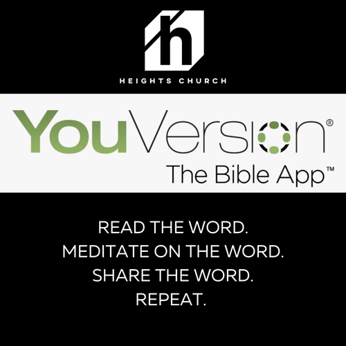 YouVersion Groups are an excellent way to test the waters if you're feeling uncertain or shy or feeling uncomfortable with in person gatherings right now. We always have a study going led by one of our leaders and you are welcome to join at any time! You can join in with these studies by clicking the graphic or by going to our Facebook or Instagram bio link. You can also find it on our APP under Heights Groups. You will need to have the YouVersion Bible app on your phone and create an account if you don't already have one. Give it a try and get signed up!